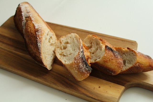 生のガーリックを、軽くトーストしたバケットにこすり付け、